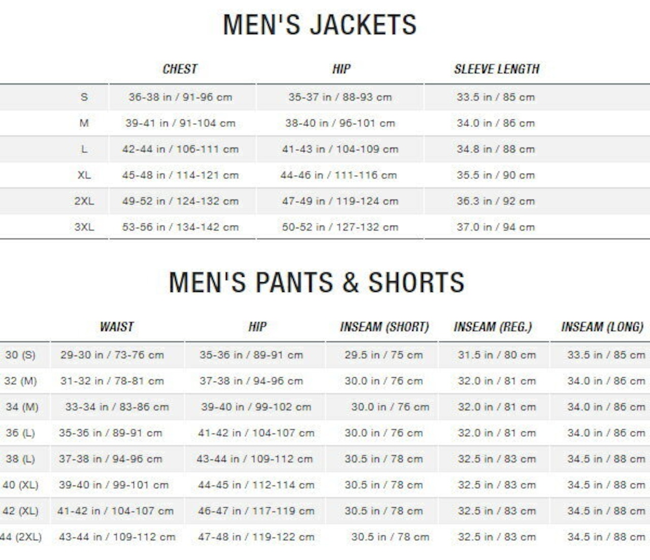 XS/S/M/L/XL/2XL